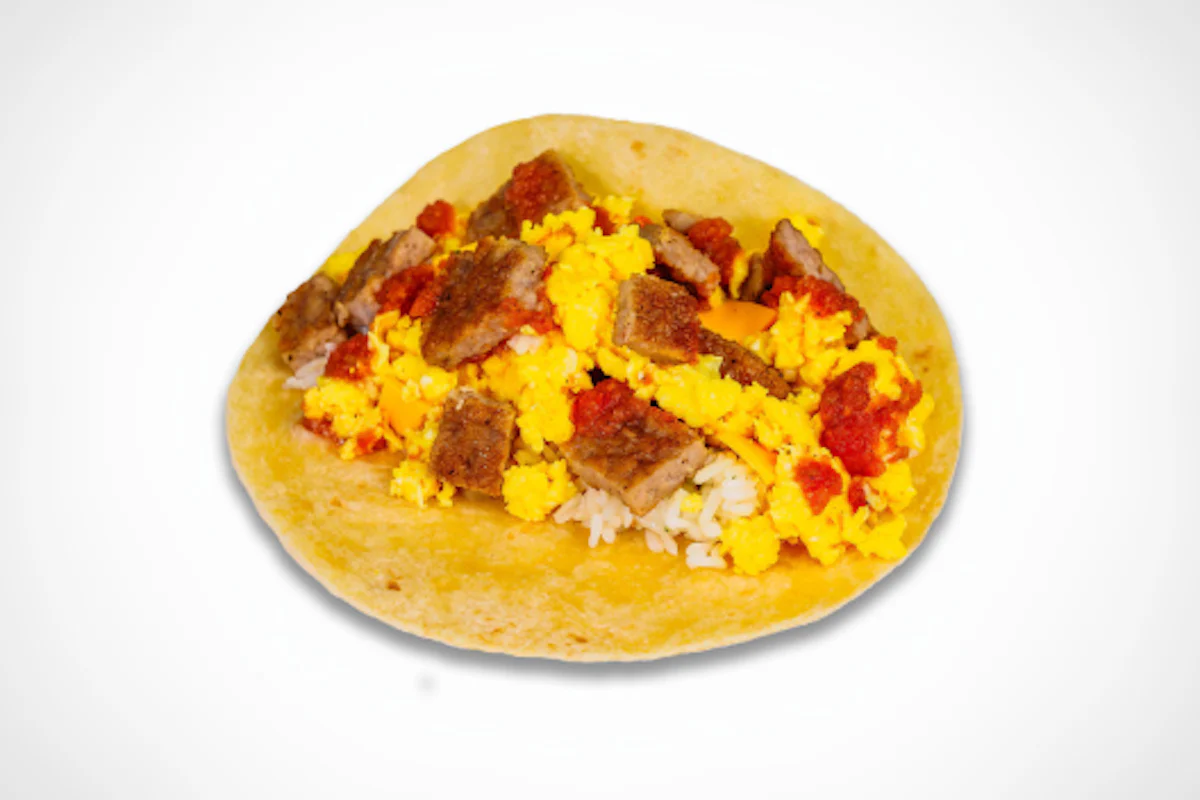 ONE (1) SOFT SHELL TACO STUFFED WITH PROTEIN, ONE (1) FRESH EGG, HASHBROWNS, SALSA, TOPPINGS OF YOUR CHOICE AND CHEESE (SOME CUSTOMIZATION OFFERED) *SEASONED RICE AND ALL SALSAS CONTAIN CILANTRO*CHOICE AND CHEESE
