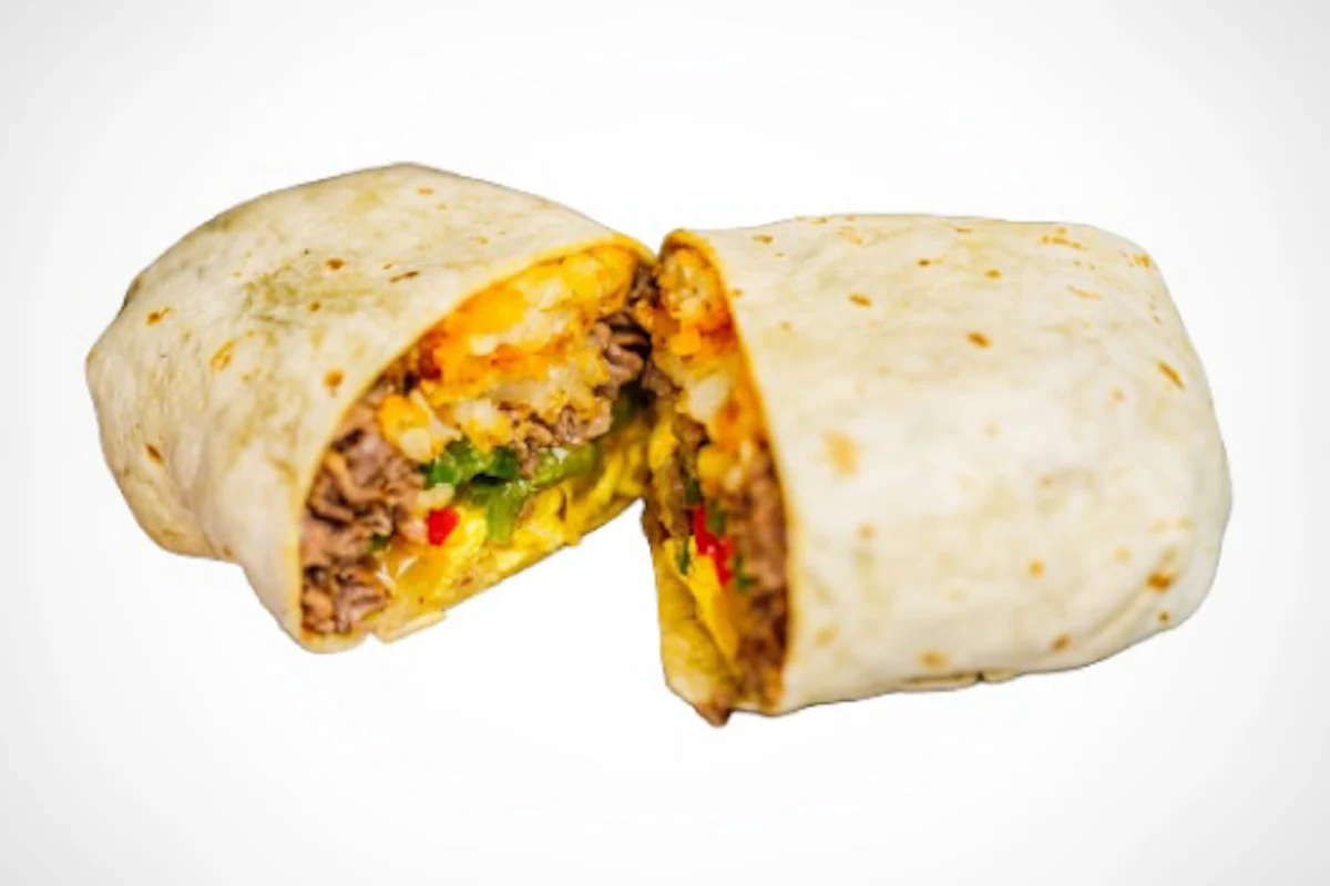 GRILLED FLOUR TORTILLA STUFFED WITH YOUR CHOICE OF PROTEIN AND TOPPINGS, EGGS AND CHEESE (SOME CUSTOMIZATION OFFERED) *SEASONED RICE AND ALL SALSAS CONTAIN CILANTRO*